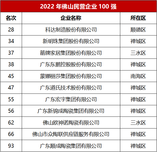 9月27日,2022年佛山市企业家日品质革命大会举行,当天发布了2022年佛山市企业100强、制造业100强民营企业100强等系列榜单。