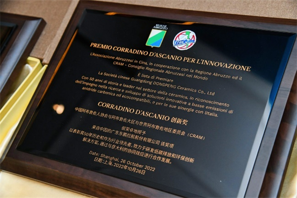 Dongpeng entered the Italian market in 2006, and then always remained committed to building bridges for the exchanges on ceramic culture and technology between China and Italy. Thanks to its intelligent manufacturing with features of green, energy conservation and solutions to low-carbon, environmental protection and green innovation, it was highly recognized by the Commission, and assigned the honorable prize.