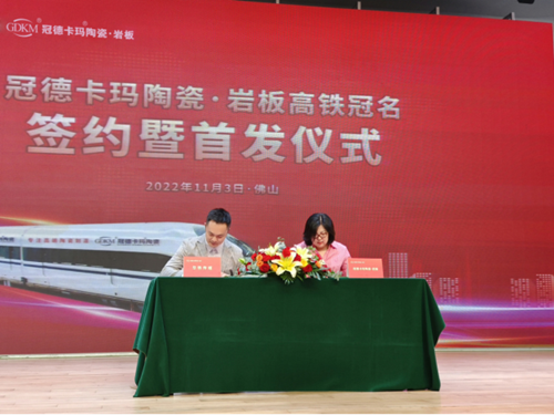 ▲冠德卡玛陶瓷·岩板高铁冠名签约仪式