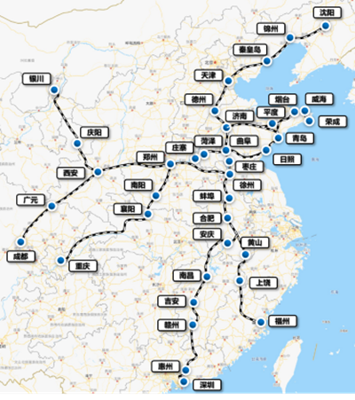▲ 冠德卡玛陶瓷·岩板高铁冠名列车线路图