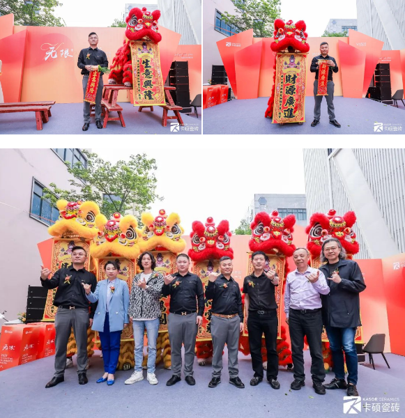 精彩的致词环节后,在欢乐的锣鼓声中,卡硕领导为祥狮点睛,意味着会带来灵气和生机,也寓意着卡硕瓷砖现代建筑美学馆将注入新的动力,焕发出点石成金的美好祝愿。随后,在现场嘉宾的见证下,瑞狮觉醒起舞,采青吐幅。卡硕两位领导接福接财,寓意着卡硕日后大展宏图,财源广进!
