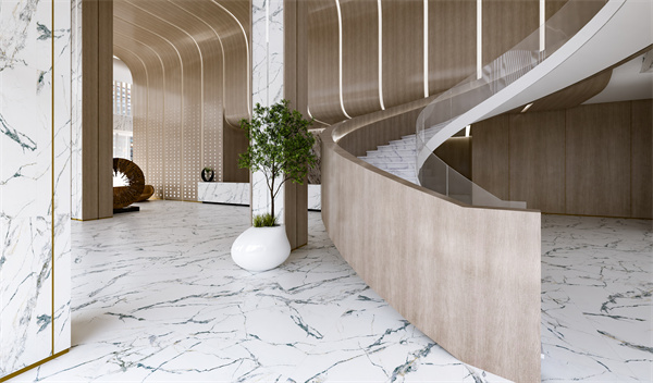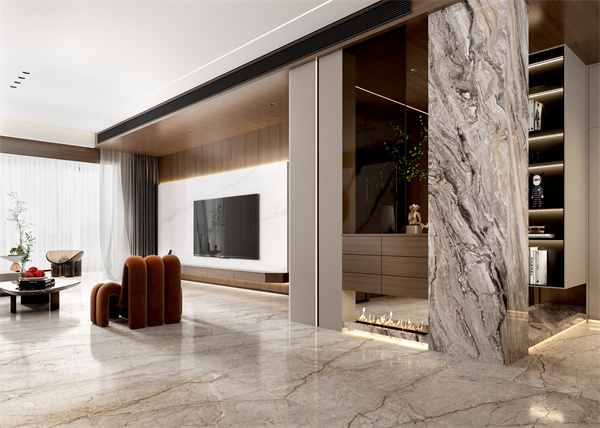 通过长期的用户需求洞察以及市场环境调研,BG葆格荟从用户思维和应用场景出发,在2023年初率先在国内推出1200×1200mm的全新规格。随着新品上市,相信1200×1200mm规格能够凭借着大尺寸、铺贴效果高端、大气的优点,以及中国消费者习惯使用正方形比例瓷砖的优势,可以满足市场上有着高奢需求的空间场景应用,如客厅、五星级酒店、高端会所等。