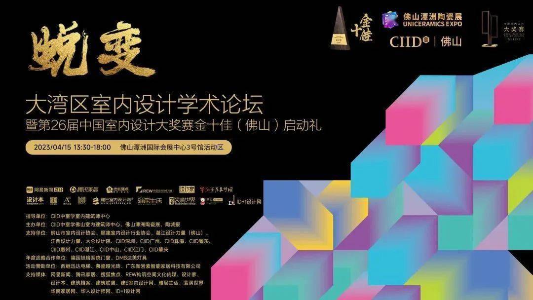 (华南家居网讯)2023年4月15日下午,大湾区室内设计学术论坛暨第26届中国室内设计大奖赛佛山地区“金十佳”作品评选启动礼在佛山潭洲国际会展中心3号馆圆满举办。本次活动主题为“蜕变”,以设计为媒,功夫之名,来自大湾区的CIID各地中心的设计师代表齐聚佛山,论道学术,共同探讨室内设计发展趋势。