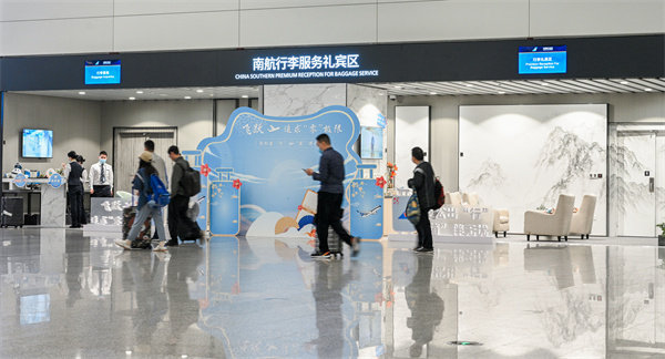 为服务好穿行于白云国际机场的国内国际旅客,践行南航“连通世界各地 创造美好生活”的企业使命,南航地面服务保障部联手金意陶集团在国内行李提取厅打造了一处行李服务礼宾区,将现代中式的设计风格完美融入,营造出极具中国传统文化内涵的空间感受,让机场变成值得流连忘返的艺术馆,为旅客提供了愉悦的出行环境。