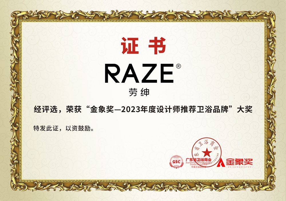 全新之姿绽放!祝贺RAZE劳绅荣获金象奖—2023年度设计师推荐卫浴品牌大奖