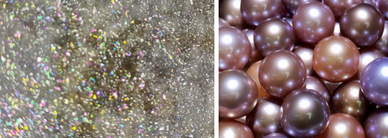 2、通过改进施釉设备和优化烧成制度,成功实现让硅酸锆晶体均匀分布在釉层中。由于硅酸锆晶体具有高的折射率,具有很强的色散能力,从而呈现均匀的珍珠闪光艺术效果。
