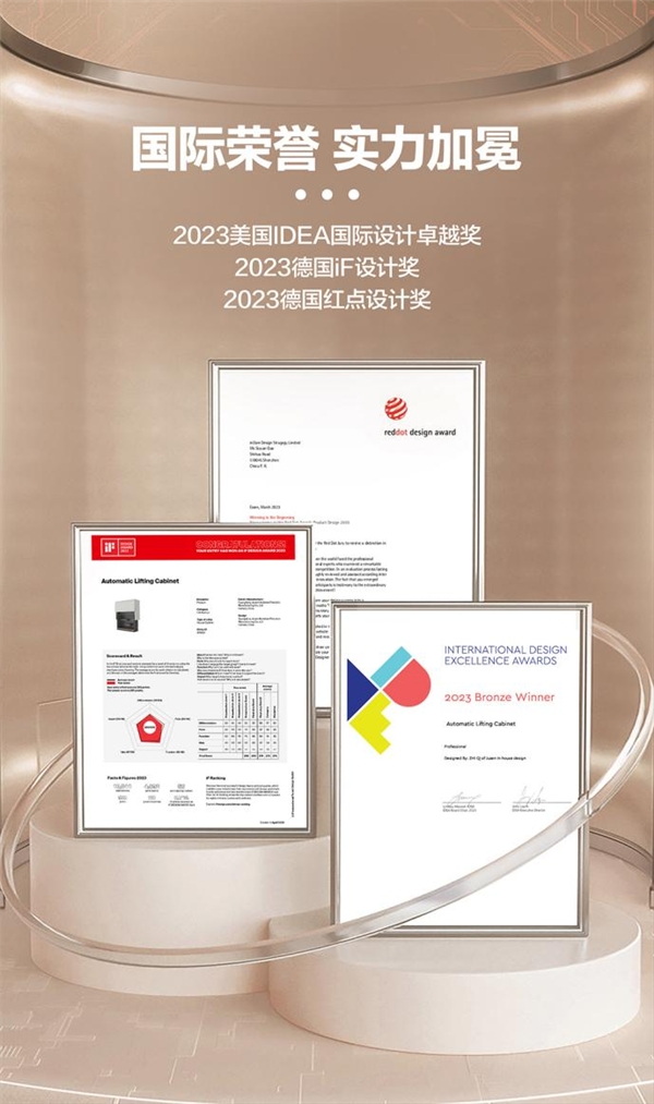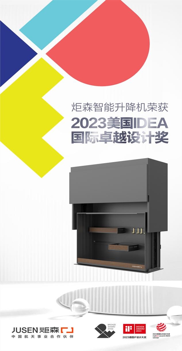 由于美国IDEA设计奖、德国红点奖和德国iF设计奖是举世公认的“世界三大设计奖”,因此,炬森智能升降机同时拿下这三大奖项,标志着该产品实现国际设计奖“大满贯”,已经屹立全球工业设计巨匠之列,成为国际家居设计的标杆。