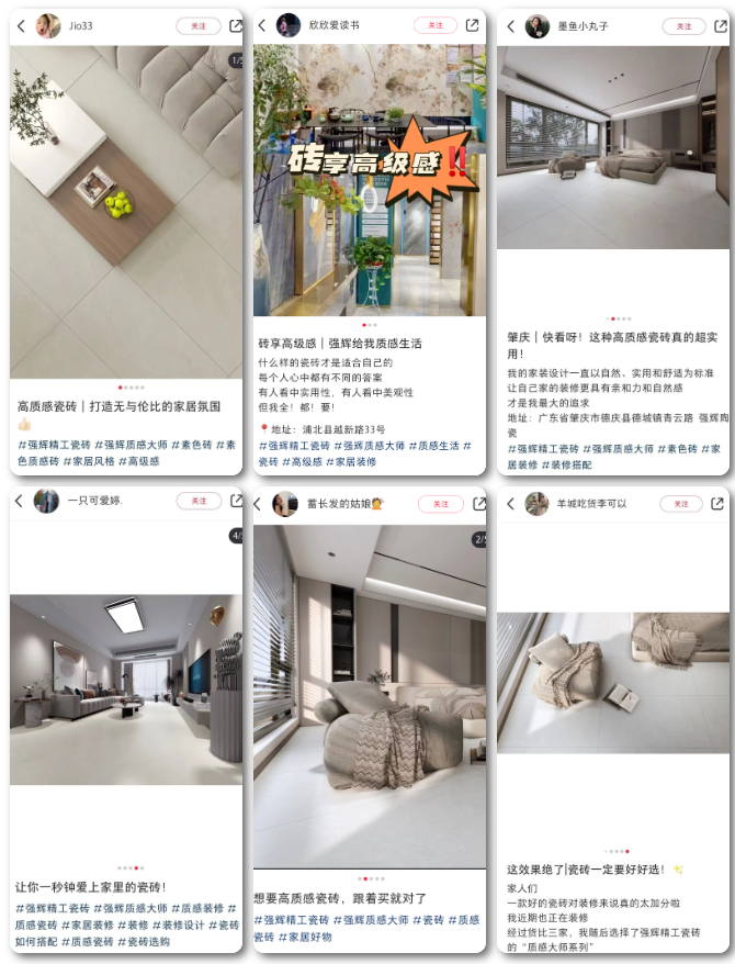 (华南家居网讯)最近,强辉在行业内的声量持续高升,不仅有新品质感大师系列全新上市,更有各种规模的活动引爆了无数家装消费者的热情,火爆全网。自新品发布以来,多位达人相继为质感大师系列产品打call,强辉精工瓷砖的热度高居不下。今天,我们一起来感受强辉精工瓷砖的魅力吧!