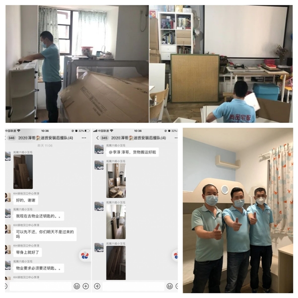 陈经理在与物业沟通后,提前做好准备,反复与师傅确定具体上门时间以及安装人数。由于客户在老家没回到武汉,陈经理建立起“客户家送货安装后援队”的微信群,设计师上门帮客户收货,在群里播报送货进度,师傅送完后让设计师把收货清单发在群里让客户确认,实时为客户播报现场情况使其放心。