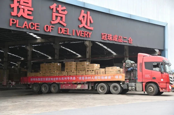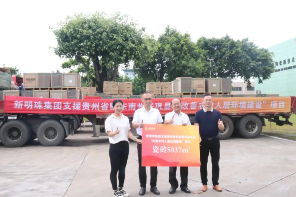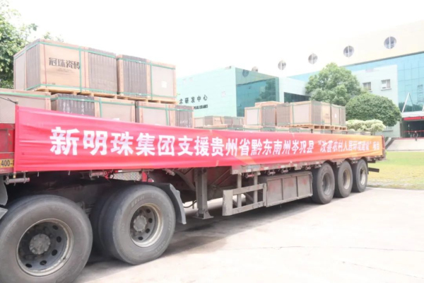(华南家居网讯)近日,一辆辆满载瓷砖产品的运输车从新明珠集团三水园区出发,驶向贵州省岑巩县。为积极响应佛山市三水区对口黔东南州岑巩县东西部协作号召,新明珠集团捐赠价值56万元的瓷砖产品,支持岑巩县实施乡村振兴战略,助力岑巩县改善农村人居环境,建设美丽宜居乡村。