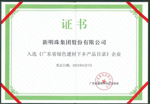 △ 新明珠集团入选《广东省绿色建材下乡产品目录》企业