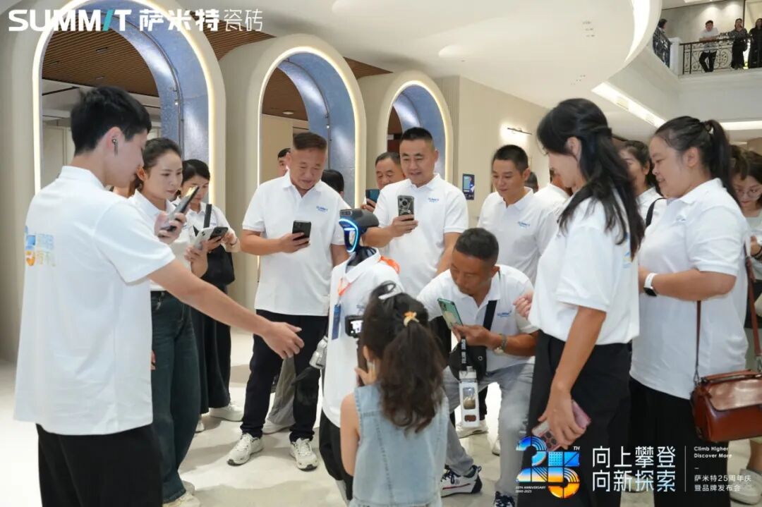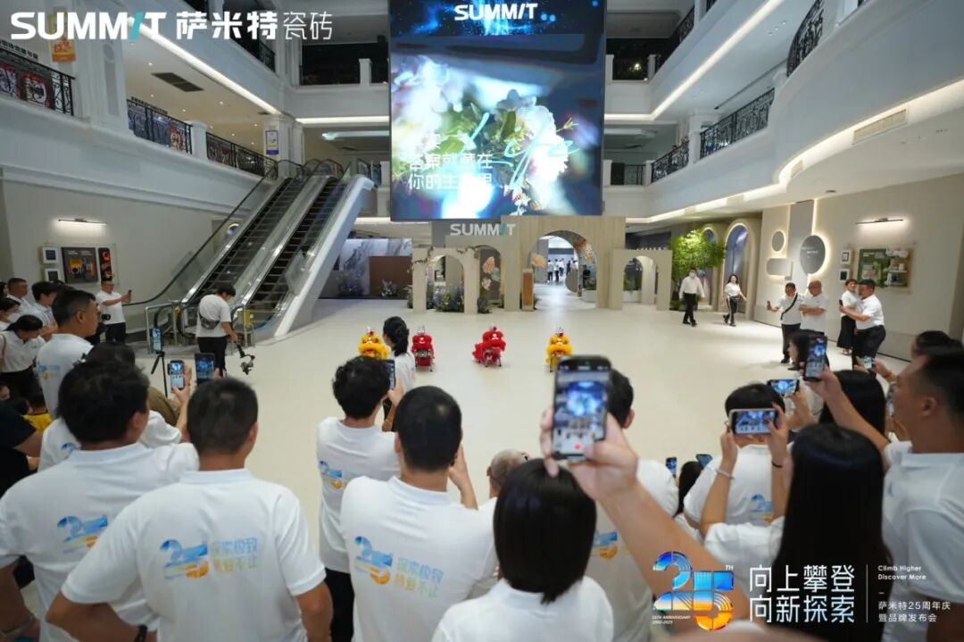萨米特瓷砖品牌代言人王安宇亲临现场,新明珠集团董事长兼总裁叶德林;中国建筑卫生陶瓷协会副会长 宫卫、广东陶瓷协会会长 陈环;佛山市陶瓷行业协会会长 尹虹;天仪研究院创始人兼总裁 杨峰;新明珠集团董事、常务副总裁梁旺娟;新明珠集团副总经理、营销管理中心副总经理 高颂;萨米特瓷砖品牌总经理 王智勇与集团、品牌各部门高管,全国各地萨米特瓷砖经销商代表、合作伙伴、消费者以及媒体朋友们齐聚一堂,共同见证这一里程碑式时刻,携手开启向上攀登·向新探索 萨米特瓷砖品牌25周年探索计划!