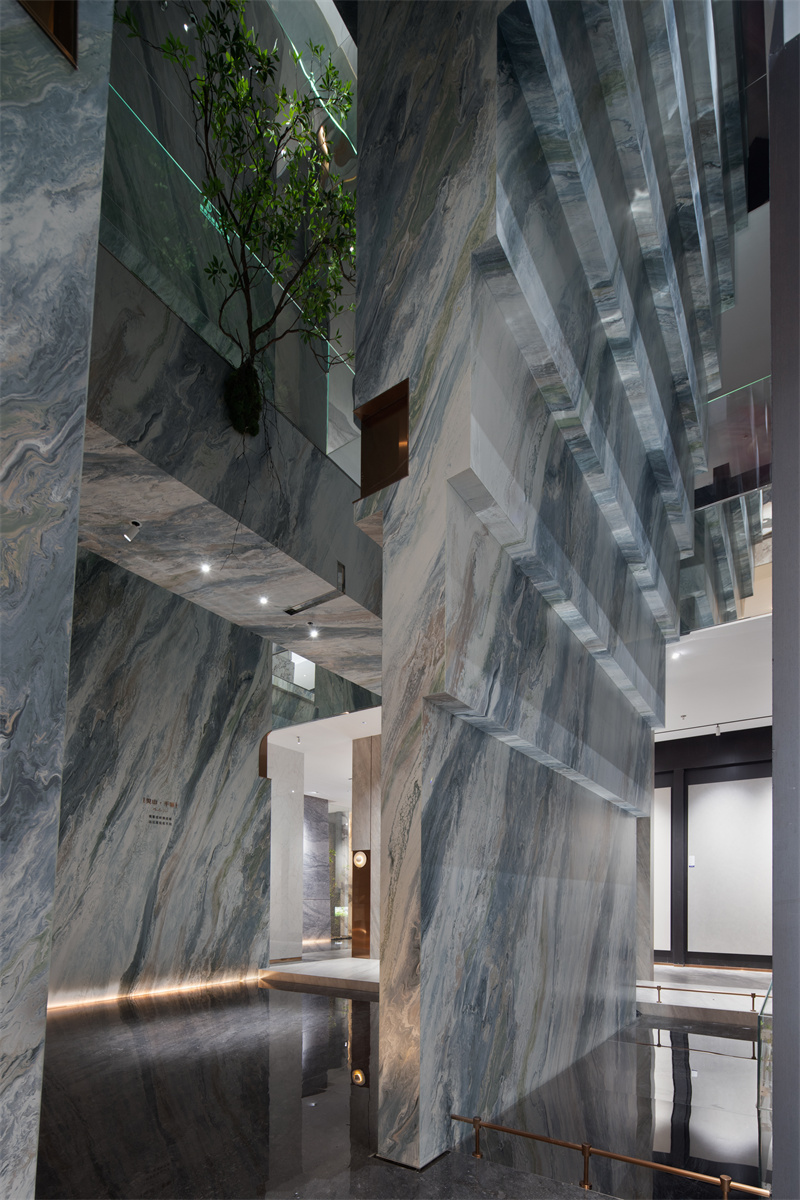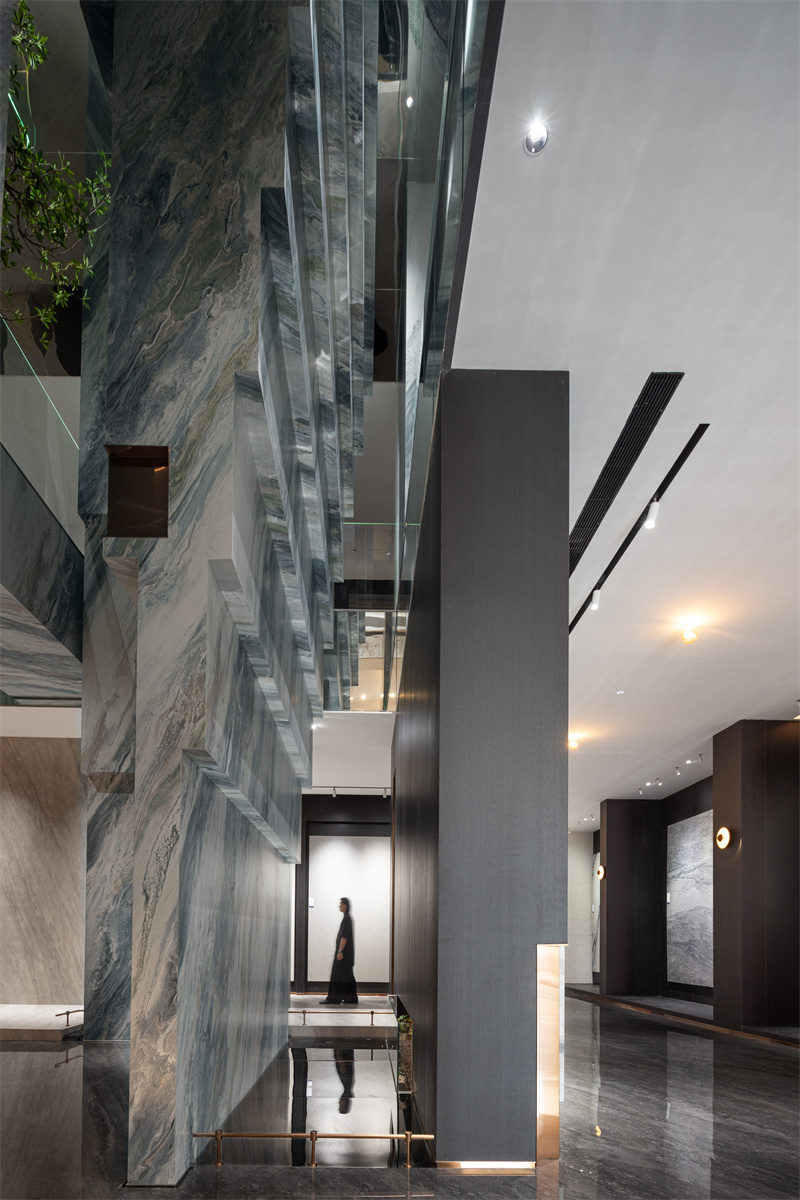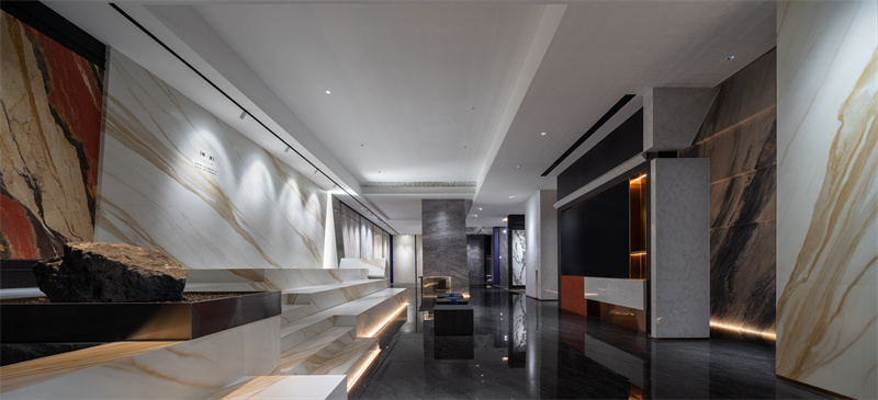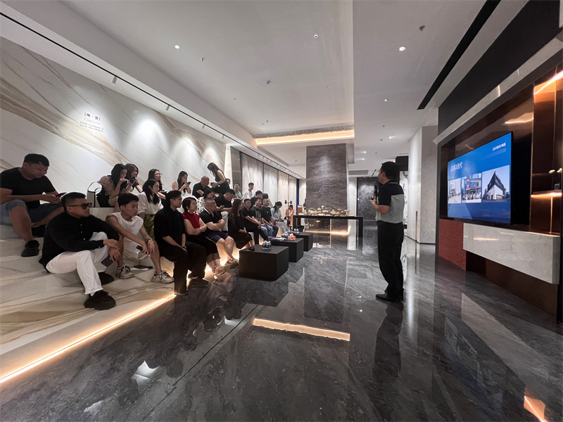在简品产品研发负责人段云飞女士的引导下,媒体嘉宾们沉浸式探访了「见山」美学馆。参观900x2700mm、900x1800mm、750x1500mm、600x1200mm等多款新品……每一款产品在空间情境中,展现出简品连纹设计与密缝工艺的震撼效果。