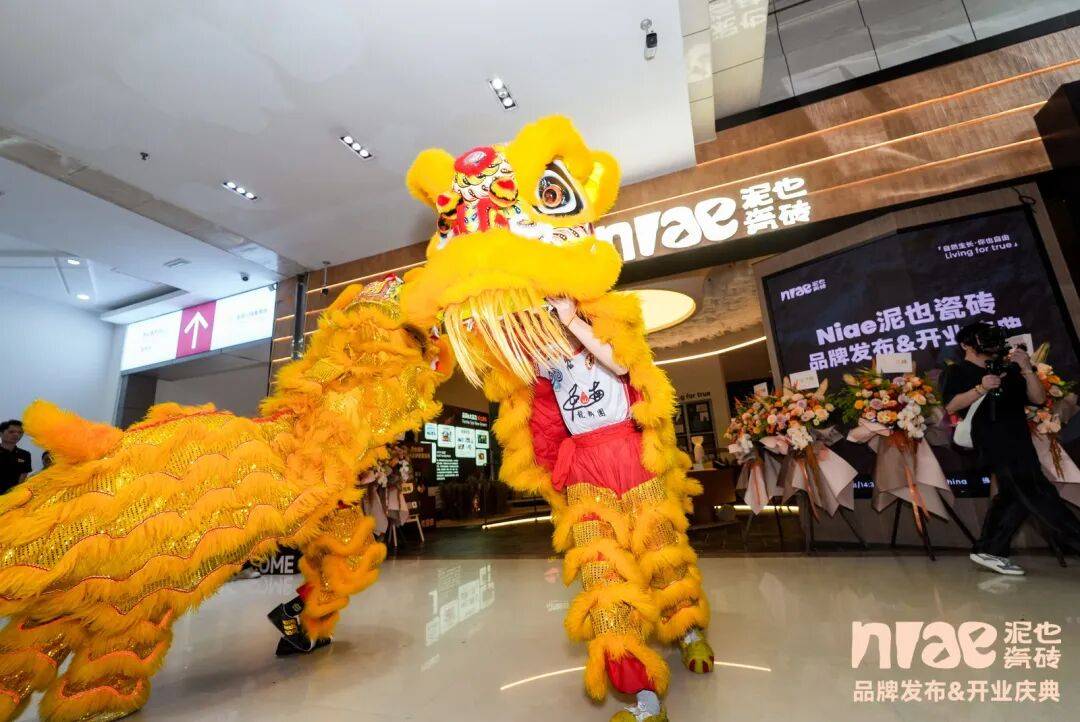 活动现场举行了隆重的品牌揭幕与剪彩仪式,气势昂扬的舞狮表演登场助阵,醒狮腾跃、锣鼓齐鸣,为现场带来祥瑞与活力。在旭日集团及泥也瓷砖领导与全场嘉宾的共同见证下,金剪齐落、礼炮齐鸣,标志着定位高质感「小而美」的新锐特色品牌正式启航,开启 “自然生长” 的蓝海赛道。