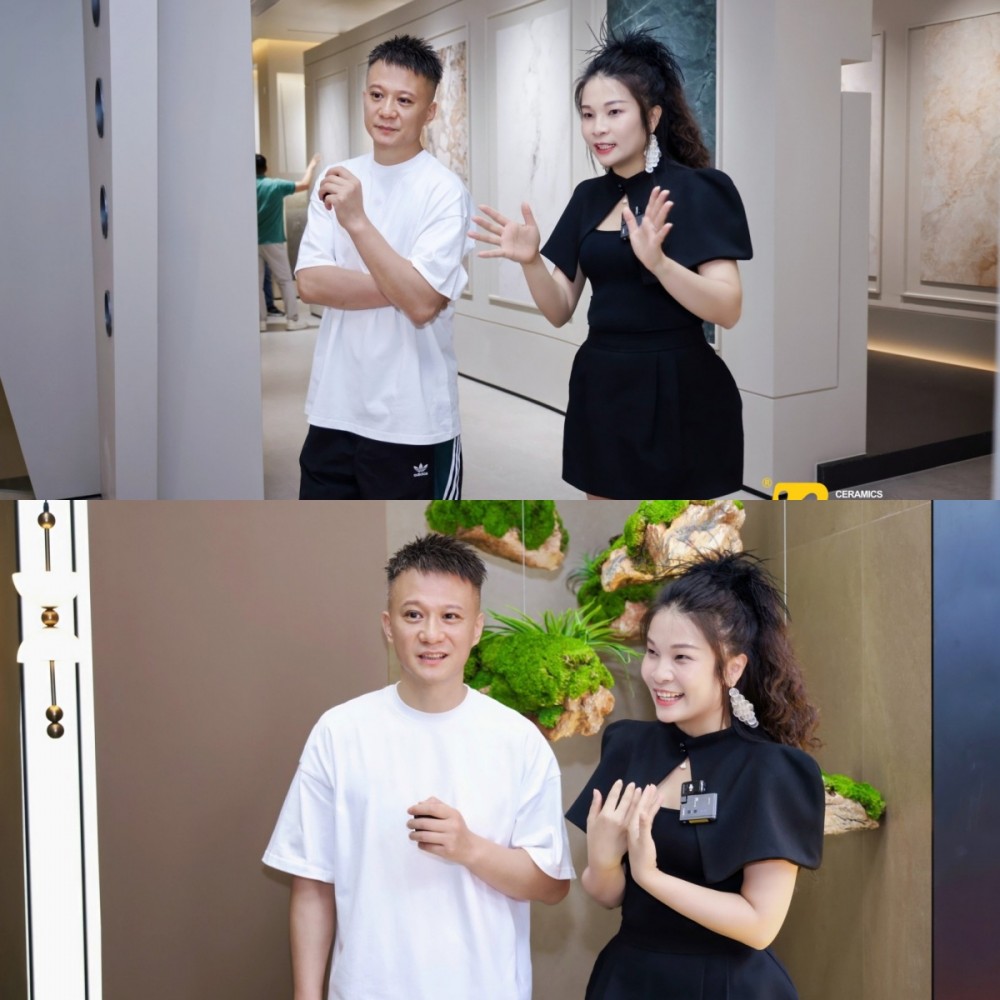 巴里诺品牌主理人于辉带领现场及线上观众开启沉浸式“云逛展”,深度解读新展厅设计理念与核心产品亮点。 本次全新启幕的巴里诺展厅,摒弃传统瓷砖展厅“产品堆砌”的展示模式,以“生活场景化”为核心设计逻辑,打造集产品展示、空间体验、美学交流于一体的沉浸式质感生活馆。展厅将产品肌理、色彩与光感融入多元场景,让参观者能够直观感受到瓷砖在实际应用中的美学效果与空间氛围。