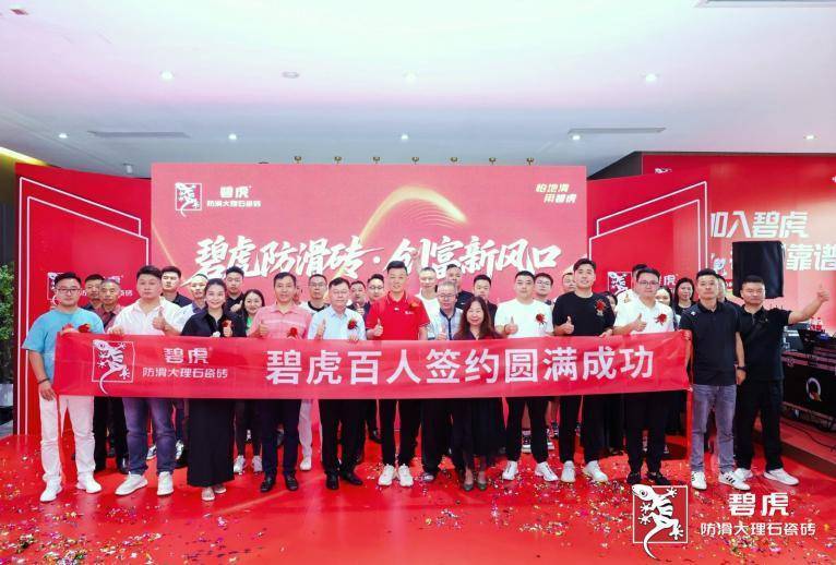 新品启动的热潮未退,一场承载“创富喜报”的百人签约环节接踵而至。据现场披露,经过前期与合作伙伴的深度对接,截至发布会当天,碧虎已成功与39座城市达成合作签约。这一数字并非简单的数量积累,而是市场对碧虎防滑技术实力的高度认可,是经销商对品牌创富战略的坚定信任,更是双方携手抢占防滑砖刚需市场的重要起点。