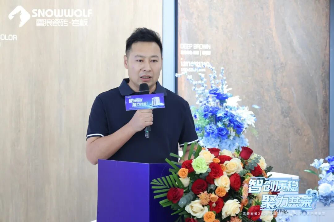 晚宴上,雪狼岩板厂长冯义涛先生带来了题为《智创质稳,聚力共荣——一个源头工厂的时代回应》主题演讲。