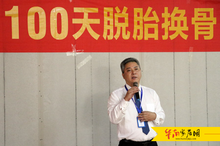 “百天脱胎换骨,从人开始!一个人抵不过一群人,一群人抵不过一个团队!只有打造一支精兵劲旅,才能无往不胜”宏宇陶瓷品牌总经理张永春在开营仪式中动员。