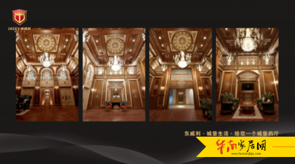 作为大会现场的重头戏,东威利的第10套产品——城堡大厅震撼亮相。“这个大厅以英式宫廷会客厅为基础,融入美式和法式元素,专属东威利的实木定制豪华大厅。”叶广柱向全场嘉宾隆重介绍“城堡大厅”。这是专属于东威利的设计风格,运用材质、色调和描金的点缀,形成了和谐统一的室内场景。
