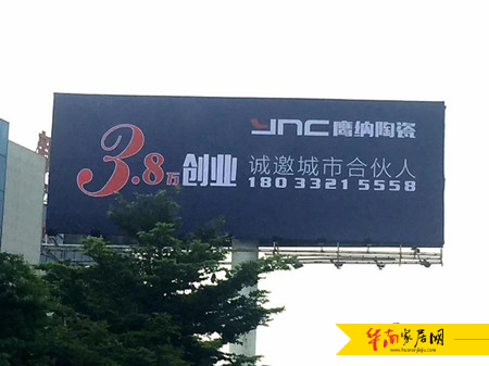 (华南家居网讯)在这个大众创业、万众创新的中国新常态下,全民创业是这个时代的缩影,作为传统行业的陶瓷行业也不例外。近日,在陶瓷重镇的南庄华夏陶瓷城陶博大道(即佛山一环樵乐路出口转入陶博大道入口)位置一个立柱广告 “3.8万创业,诚邀城市合伙人”吸引业内人士及广大客户的关注。同时“3.8万创业”的话题迅速成为了佛山华夏陶瓷城的一个热点。