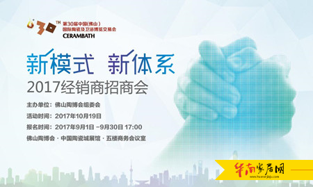 2017年10月19日9:30新模式、新体系——2017经销商招商会将在中国陶瓷城展馆·五楼商务会议室展开。