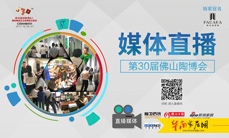 第30届佛山陶博会媒体直播由PADARA(帕达纳)瓷砖独家冠名,新浪家居、佛山日报、房天下、陶卫商讯、中国建材网、中洁网6家直播媒体在展会的不同时间段以不同主题进行直播。同时,三大展馆现场LED屏对直播内容进行滚动播放,线上线下相结合,对展会现场、企业产品、重要活动等进行直播,第一时间传递到精准读者手中。