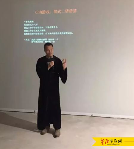 首先是毫无预兆又毫无违和感,被抽中的加西亚品牌营销总经理谢冬平化身黑武士登场,和现场的媒体朋友玩起了“黑武士猜猜猜”,黑武士之歌一停,黑气球落在谁家谁就得表演的游戏。